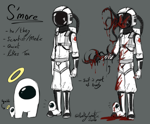 i made some art of the imposter from Among Us! this is sort of my take/theory/auhere are supplementary notes: