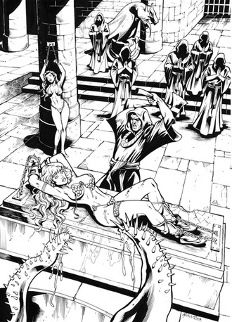 I've been asked about an image of a girl on a rack; and yes, indeed I've drawn such a scene before, and tried to polish this one up a bit: A princess and a sinister duke in a very private meetingRelated content