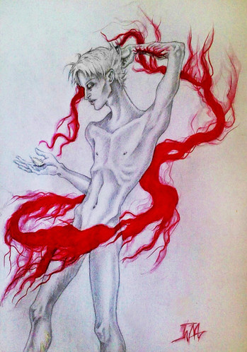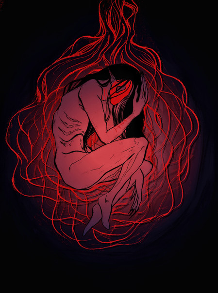 I can get really angry and frustrated, there was one day last year where life hit me hard and I wasn't having it. I thought to take to my phone, opened up Sketchbook Express. Selected red, and started swiping lines onto my phone. The lines became an outline of a body, a head, and hair. The arms where crossed covering the chess like a dam wall keeping the water in. The full facial expression revealed. My drawing had turned into a caricature silhouette of me. I get enraged but I do my best to contain myself, and it's a side not many will see.I uploaded this into my computer when I decided I could use this for the art contest "Red." I made some slight changes, defining the hands, adding static lines in the background. This piece was trip to make.
