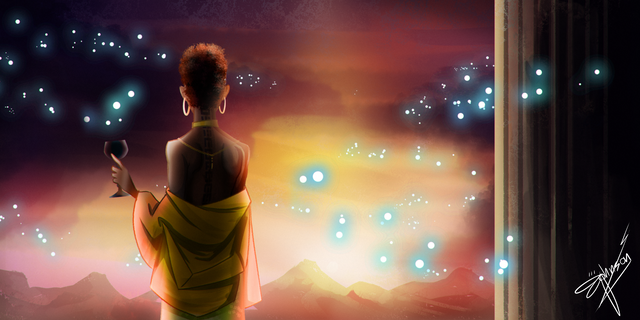 #character #painting #africanfantasy #africanwoman #blindfold #blindfoldedgirl #characterstudy #clouds #colourstudy #digital #digitalpainting #fantasy #jewelry #photoshop #portrait #sky #sunrise #vibrantcolors