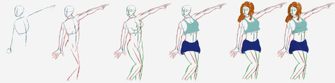 3) When using this method, I always start with the head, then the torso, followed by the legs and finally the arms, but I don't want to limit you to one strict way of using this method. Try different ways of drawing it. You can even use boxes or extra circles if you feel like that helps you. But always remember to to keep the stick man very lightly draw, because you'll erase that part later.