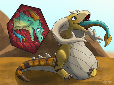 Happy Easter, everyone!It seems Sheath has stopped for a snack break- I mean, Snake Break- with the Naga from my Midnight Snack story! She does not seem very happy about all this. As usual, Sheath will not harm any prey he swallows, he is just being friendly!