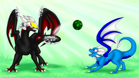 Not my character (Telzok, an anthro dragon alien) he hates soccer. I've been writing a story about him when he was a hatchling. To make a long story short, his father (who was an ambassador to Earth) had invited some human delegates and their families to his world. At one point the human children see Telzok and his cousins playing a soccer-like game in the air. The human children being disappointed at not having been born with wings started to play soccer on the ground instead as one of the children had brought a ball with them. They invited the aliens to try soccer with them. When Telzok kicked the ball he punctured it with his claws. The ball was even stuck on his foot which promptly deflated when he removed it.