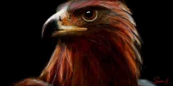 I love his coloring on the beak and feathers. Also, the eye is FIERCE! Pure awesomeness; I'd like him for a pet