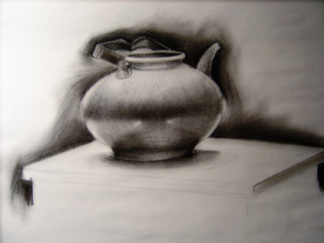 OMG SOMETHING HALFWAY LEGITIMATE.A still life from my drawing class. Crappy cellphone picture is incredibly crappy.