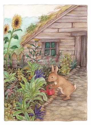 Inspired by the good old Beatrix Potter illustration.Mixed media (black ink pen, watercolors, colored pencils)