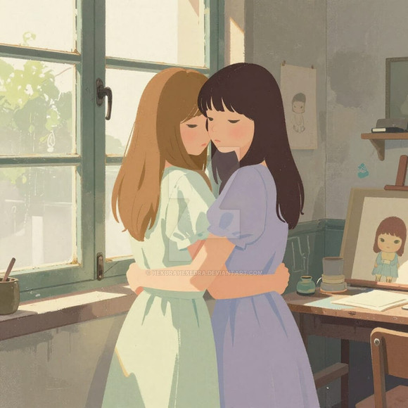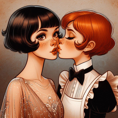 #1950s #cute #digitalart #girlxgirl #kissing #love #art