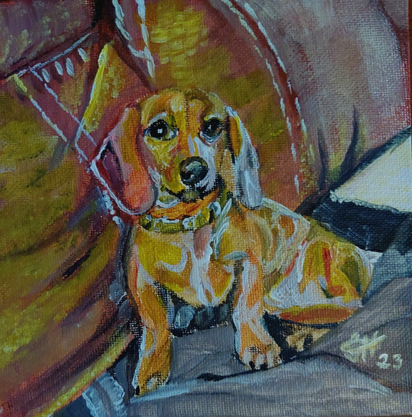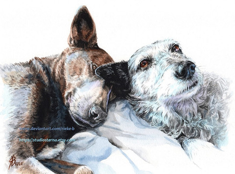 This time I tried pastel and created a series of postcards that I named "Colourful Dogs". Here you can see Rosi & Ella, the colourful dogs.Related content
