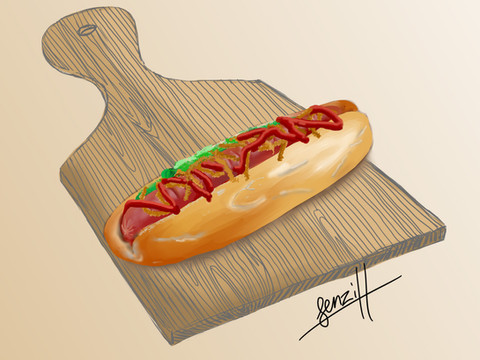 That was fun! I’ve never painted a hot dog. Wish I could take a bite. This is a digital art painting.Related content