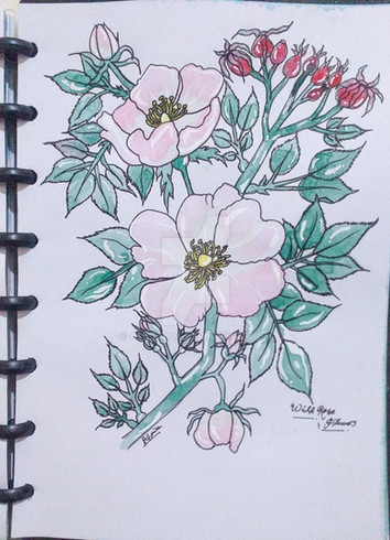 Made with water soluble watercolour pencils. This little sketch was made during an afternoon in the garden. But the best of wild roses is the smell, sweet an wonderful.Related content