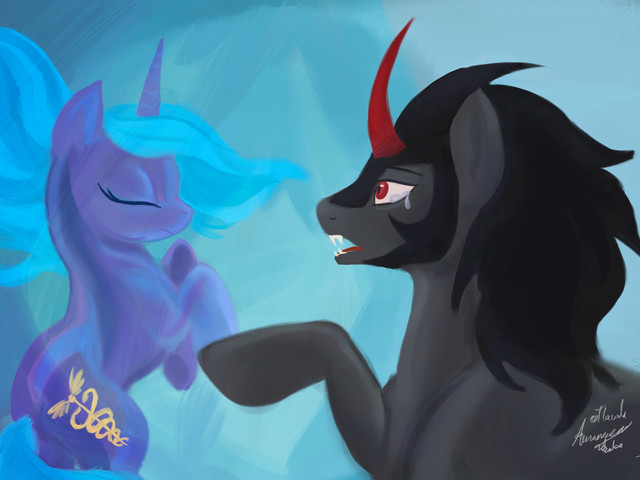 So I made something for my Warriors fans, so here's something for my MLP Followers. ^^This is what I pictured what happened 1000 years ago when Luna and Celestia defeated King Sombra, and the origin of Nightmare Moon was born.