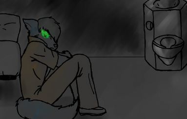 A very strong atmosphere in this picture. Pinkie's tail making a perfect circle around her front gives a sense that she is secluding herself from the world, as well as her symmetical curled-up position, and that stacks together with the fact that she's obviously in some sort of solitary confinement to create a prevailing sense of darkness. Great work!