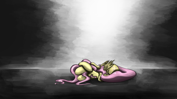 Fluttershy! I love the contrast of color. The grey background against the yellow Fluttershy. Nice job!