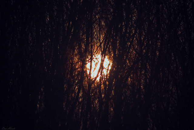 Sun obscured, clinging to rays shining through.