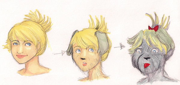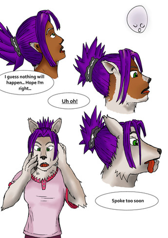 Jaime looked down and saw her tongue hanging out between her lips. It touched the bottom of her chin. She jumped back a little at the sight it. Her ears flopped in the air against the side her head; her new tongue bounced off her chin.