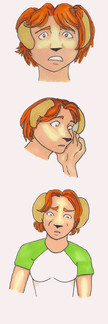 Jaime spun around ran to the bathroom. There, on the sides of her head, was a pair of golden retriever ears. She stood there for a moment, face flushing as she contemplated the ramifications of this. Was this real? Was she hallucinating? Was this some kinda joke?