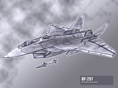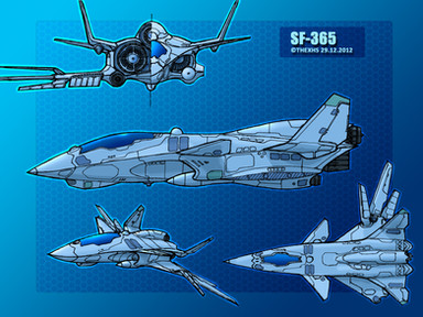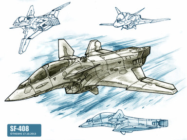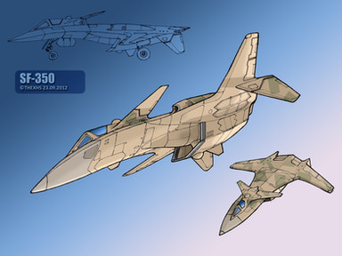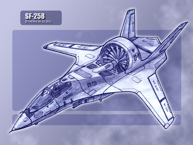 The SF-255 "Razor" is a light stealth fighter. Placing jet-intake above fuselage reduced RCS, and engine nozzle placed above tail surface reduced infra-red visibility of this birds.This one I drew for Gohanf22 camrade (about names - all question for him))