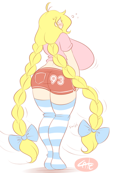 Makes sense. Tall blonde lady with braids and bows. Only thing that would make it more fitting would be a bar maid costume.