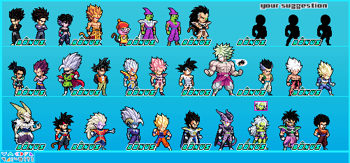 Here is the list of sprite I plan to make for the end of the year 2021some to put them in the news like my OC Patata and Ringo, others like Brogetto and caulifla, some to have no more flights like Branba , yamoshi and Buu-Zamasu