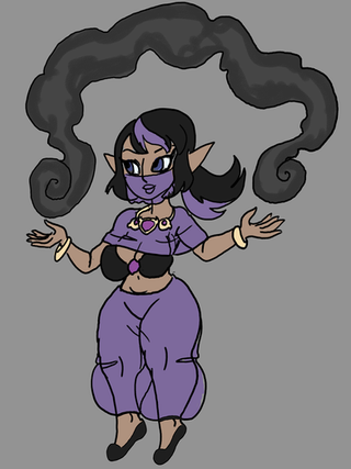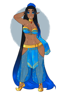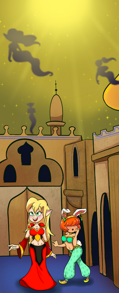 That background is indeed pretty nice. The somewhat dark and eerie environment makes for a pretty good contrast with the bright-colored and alluring genie in the middle of the pic.
