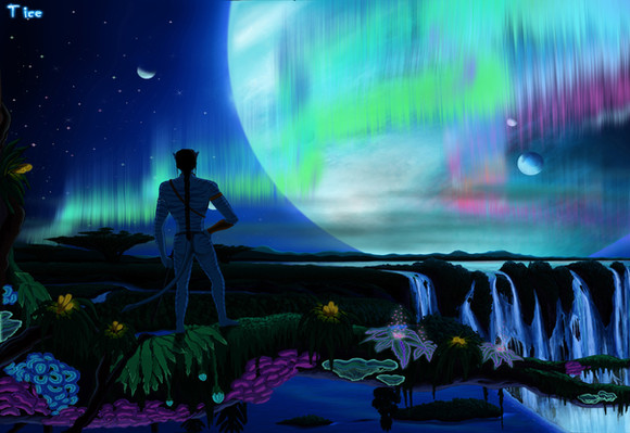 Oooooo.... damn, this is awesome. The planet seems a little off in it's shape, more egg shaped than spherical, but this is still amazing. Deff a fav! You should do more of this stuff it's really good.