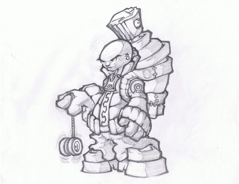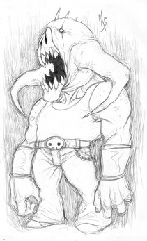 Dagg!! That is sweet!! Character ideas for a comic of some kind? Serioiusly looks like characters I had in mind for a short story I started a while back, called, "Four". But that's besides the point. I love the variation of character form, but your style holds true significantly. The big one looks like a mix between Pitt and the Maxx, and seriously angry n' wikkid! The little one could either be his unaltered identity, or sidekick, or nemesis, or whatever. But that is a style I haven't seen from you. Most of the characters you post are large, massive, ready for battle. So it was cool to see that from. The intricate details are great, and really give the eye a feast. Great work. Would love to see these refined and colored.