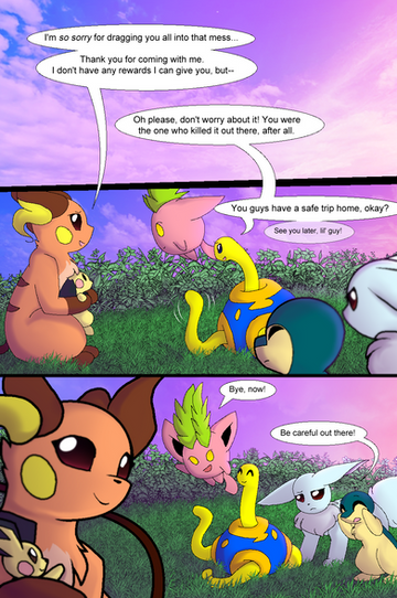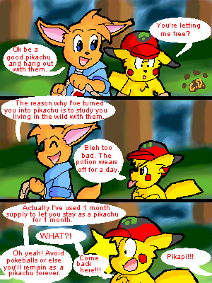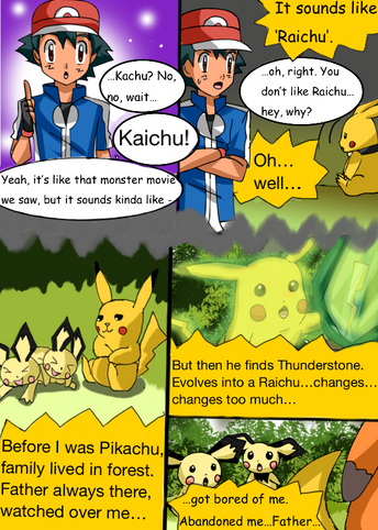 I just noticed.. The normal Pikachu Alex on the panel above the last panel looks really confident and the pichu beside him is looking up to him. Then on the panel below Alex is sticking his tongue out at the Pikachu and the Pikachu is like >:I how rude Alex