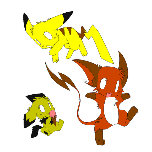 -Ray is an ex Rocketchu. He was once a normal Pikachu until he was captured by Team Rocket and tainted by their cruel experiments, which turned his cheeks and ears blue. The first experiment (which changed his appearance) failed, because of this even as a Rocketchu he could still remember his past, and he was never as powerful as he could be. He worked and trained with Team Rocket for awhile before escaping. He got a scar in his tail after battling with a Team Rocket Weavile. Now that he has escaped, years later he feels an urge to go back to Team Rocket. A feeling caused by his Rocketchu blood.