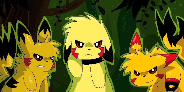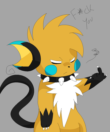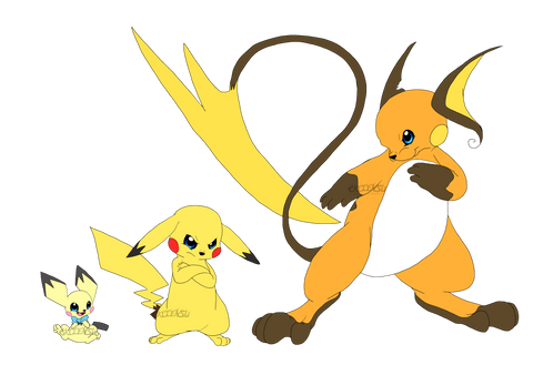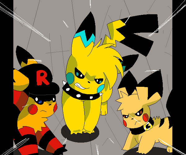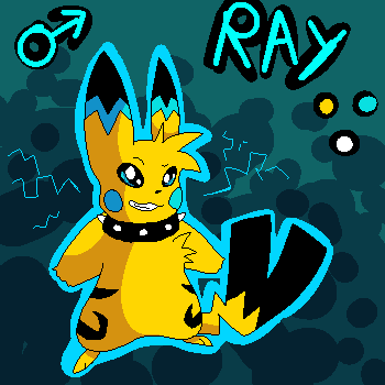 -Ray is an ex Rocketchu. He was once a normal Pikachu until he was captured by Team Rocket and tainted by their cruel experiments, which turned his cheeks and ears blue. The first experiment (which changed his appearance) failed, because of this even as a Rocketchu he could still remember his past, and he was never as powerful as he could be. He worked and trained with Team Rocket for awhile before escaping. He got a scar in his tail after battling with a Team Rocket Weavile.