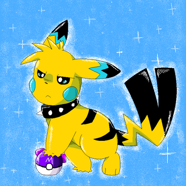 He is an evil mischievous Pikachu, he is tainted by Team Rocket experiments who turned his red cheeks blue and gave him powers to transform into powerful forms with different items. He rarely works with Team Rocket now after he escaped but he still carries his evil habits and often steals/causes trouble wherever he goes.