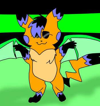 -Ray is an ex Rocketchu. He was once a normal Pikachu until he was captured by Team Rocket and tainted by their cruel experiments, which turned his cheeks and ears blue. He was the first Pokémon which Team Rocket experimented on to change it's fur color. The experiment (which changed his appearance) failed, because of this even as a Rocketchu he could still remember his past, and he was never as powerful as he could be. He worked and trained with Team Rocket for awhile before escaping. He got a scar in his tail after battling with a Team Rocket Weavile. Now that he has escaped, years later he feels an urge to go back to Team Rocket. A feeling caused by his Rocketchu blood.