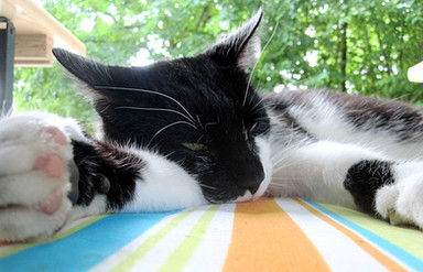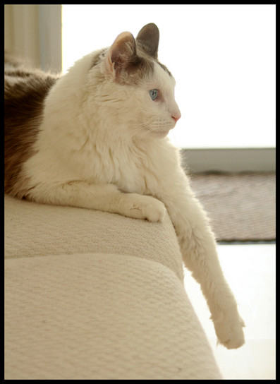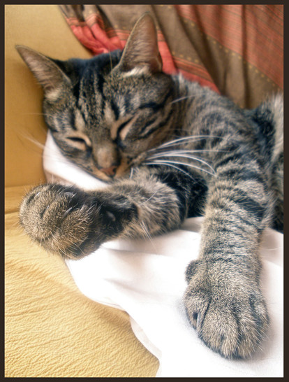 This is my cat Tigger lying on the new sofa.He looks so sweet.