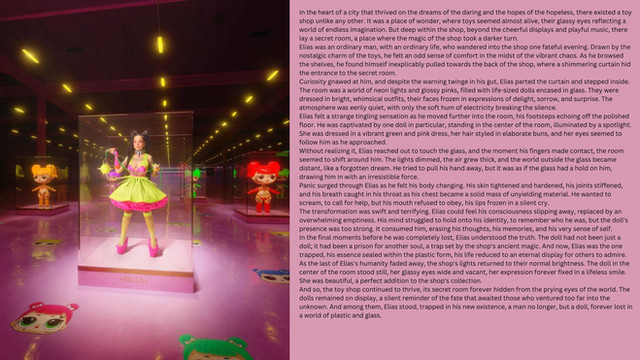 Days turned into weeks, and weeks turned into months. You watched as workers came and went, inspecting the dolls, packaging them, and shipping them off to stores all over the world. You tried to scream for help, but your voice was only a faint whisper. No one could hear you.