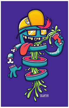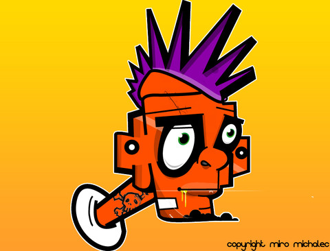 You know, he looks pretty cool! I love the color scheme and simplistic style! Good job!