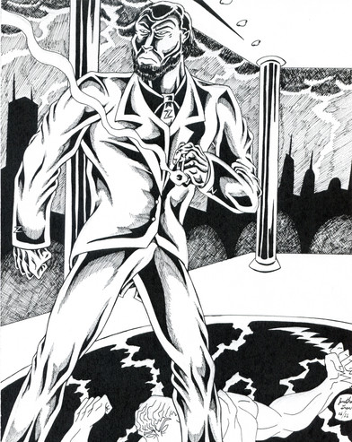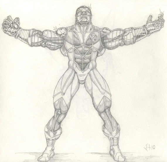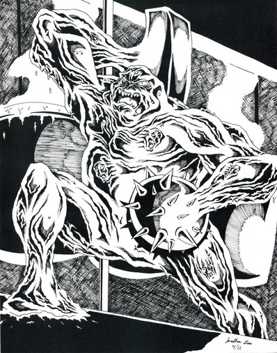 I made a number of sketches before settling on this one. I wanted to get across the size & mass of the character & suggest he is almost just too big for the picture!Related content