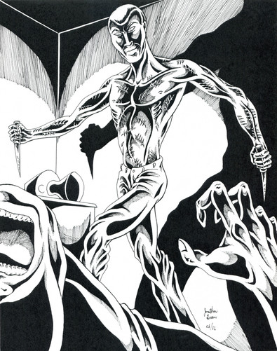 My hand hurts just looking at this!All things considered, this piece didn't take much longer than my average time to complete a picture, which is six to seven hours. The thinking behind the faces coming out of his body is that Clayface's body unconsciously reacts to his emotional state, which is pretty damn unstable! Thus, bits of his fractured psyche will burst out randomly from anywhere on his body! Cool huh?