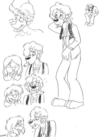 Some more for that concept for a pitch to WB as part of a SCAD class. Here we have Shroomer the Chinese Crested at the top; Conan the Beagle in the center, and Cheeks the Chartreuse cat who's species-confused.Related content