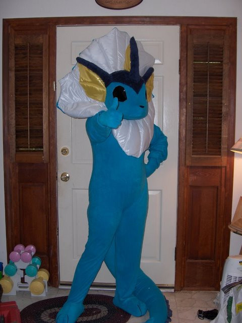 So HERE'S the big comission my sis and I did for Otaklause Challenge for Otakon 2006. We only got paid $500 which is like... 2 bucks an hour for me and a buck an hour for my sis once you exclude costs for materials. *sigh* ANYhoo, the mouth can open and close, and stay closed via velcro. (One strip behind the top teeth and the bottom teeth are velcro) Foam padding legs and the tail is made out of rings of foam strung through with rope for the Otaklause functions. The inside of the head has a construction helmet insert for adjustable sizes and a belt buckle to keep the head on.The fabric was upholstery faux suede with reptilian texture at 6.96 a yard