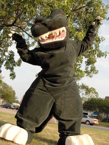 Made everything else my self. The bombs are long soda cans and ductape, the belt was bought by the yard at JoAnn fabrics, sewn into the shape of the harness; the tanks on his back were modified soda bottles. The gloves were bought at a hardware store, the yellow part done with ductape.