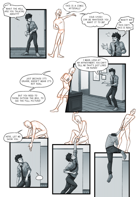 Very nice, good info. Does the 180 rule apply when your character is facing the "audience" staring at something in shock, and you flip it around in the last panel to show what they were staring at?