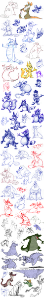 Just a scrappy little reference on character design. This is sorta a watered down version of what I go through when designing a character. I do stick figures to decide body shape, use some photo reference, or go off of a person I have in mind, the referencing other artists is done subconsciously, and I rarely ever stick with the very first design I come up with. This one, I was helping ~OtterGrl come up with an old crotchety hick-town black rat character for her Dirty Towners comic: [link]Related content
