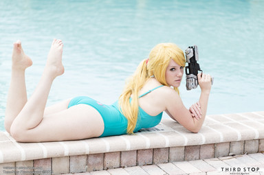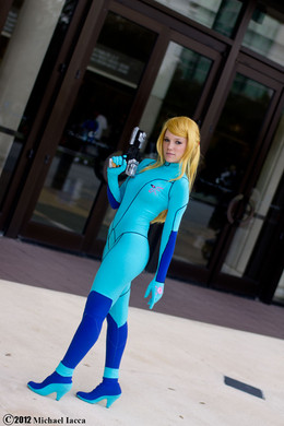 Haruko Haruhara Baseball cosplay from FLCL, and Zero Suit Samus cosplay from Metroid at Megacon 2012Haruko Cosplayer: