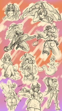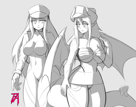 So in between bigger artsy things I've taken to doodling up some ladies who are loosely based on Pokemon