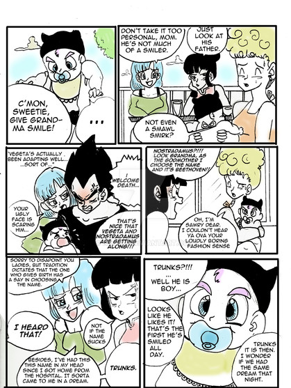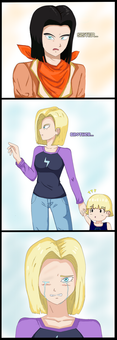 Awesome! I can just imagine 18s face when Bulma picks her up to give her to a change. I can see 18 being furious if Bulma talks to her with baby talk