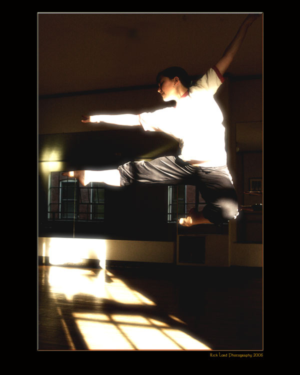 My ballerina model practicing her jumps. Early morning.Canon 20D