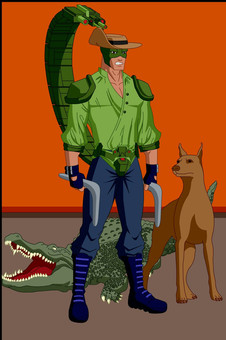 The latest in my Spidey/Flash amalgam villain. He's a combination of Scorpion (Mac Gargan, Marvel Comics) and Captain Boomerang (George 'Digger' Harkness, DC Comics). A master of the Australian bush, he's extensively studied survivalist, hunting, and combat techniques living with the Aborigines. After developing an energy blaster armed tail based off the deadly scorpions, he began offering his services as a mercenary and hired gun (or hired boomerang as the case may be).Related content