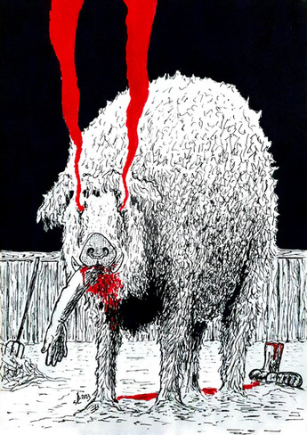 This has sharp shapes. Love the white on the cat.