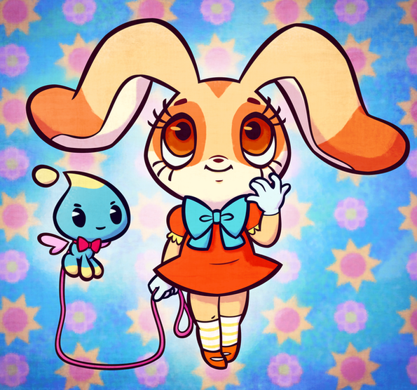 Never did read that much into Cream's physical anomalies, but you do make some interesting points regarding her ears. When in doubt, blame toon physics, since they also account for the illogical factor of Tails being able to fly. Funny how in some games, Cream is able to do the same function with her enormous ears. Wouldn't be surprised if the Japanese creators were inspired by Disney's Dumbo, knowing their love for the Mouse everywhere. At least here you give another endearing image of Cream with your personal art style that makes her ever adorable. Cheese the Chao (or rather draconic-looking creature now) was more unexpected, yet still appreciative. Their dynamic has always been a cute one, especially in how they're inseparable in Sonic X. Congrats on another successful Sonic artwork, Crispy. Yours remain some of the greatest and most original.