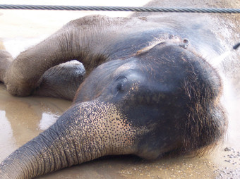 A sweet female elephant at work, showing off.