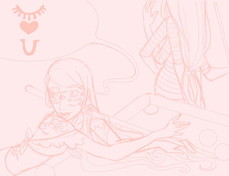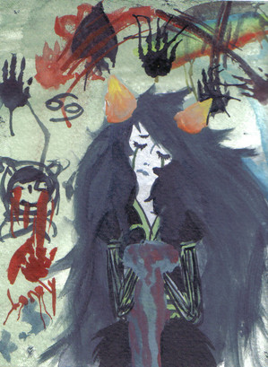 I like this coloring method but it ended up a bit messy. Ah well. First attempts are never great.Proserpine, of the ever changing hair color and mushroom crown.